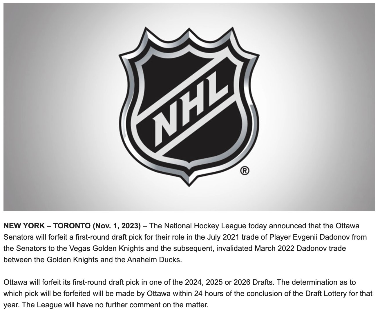 Frank Seravalli on X: “#NHL announces #Sens must forfeit one of